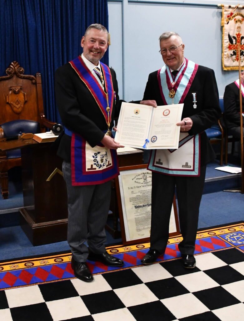 The Deputy Provincial Grand Master (DPGM) presented the WM with the Grand Masters Keystone, an honour that added to the sense of occasion. During the Second Rising, the lodge celebrated five members who will receive Provincial Grand Rank at the Provincial Grand Lodge meeting in September, marking a significant achievement for the brethren.